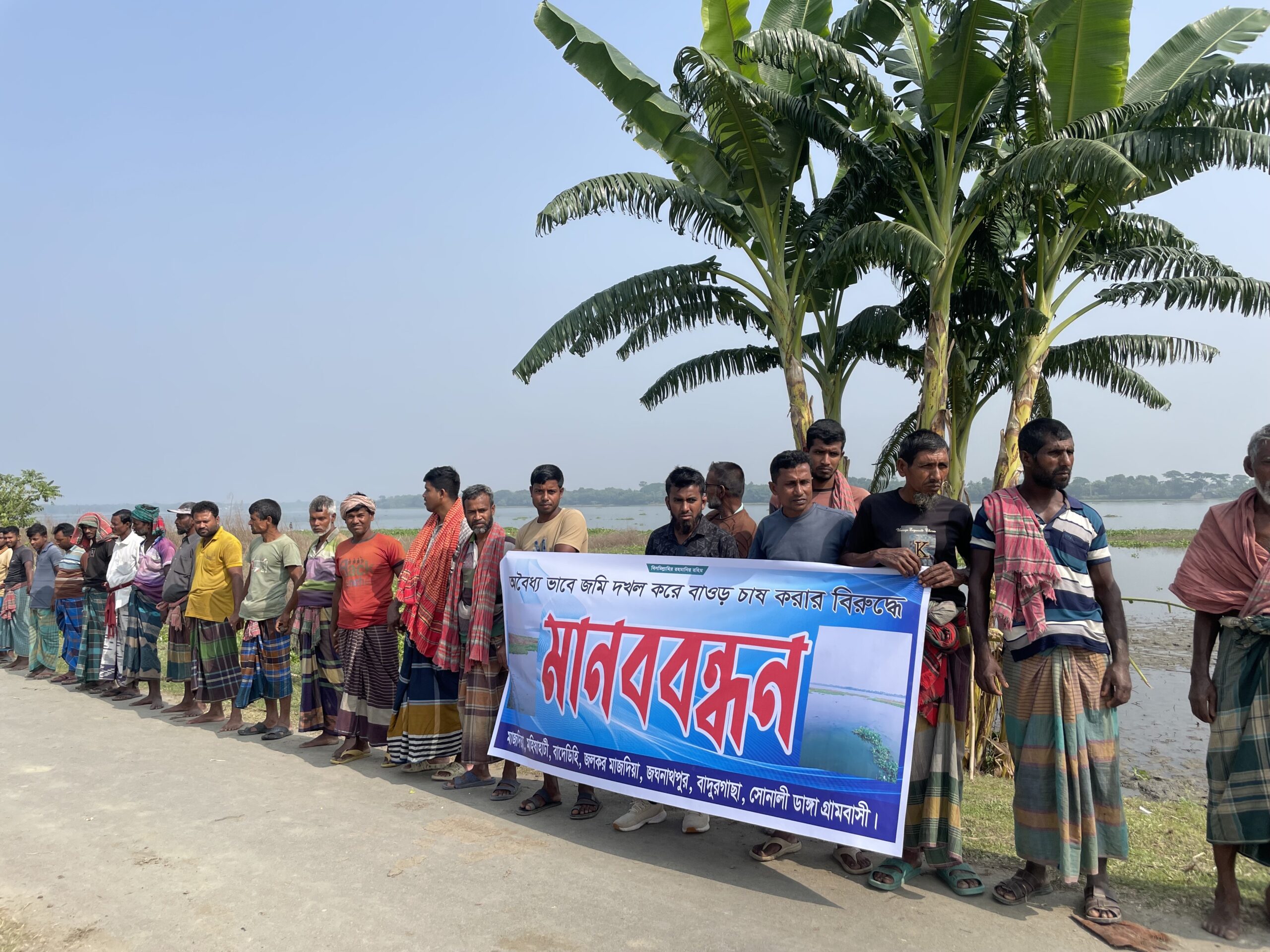 বারোবাজার জমি দখল করে বাওড়ে মাছ চাষ করার প্রতিবাদে মানববন্ধন
