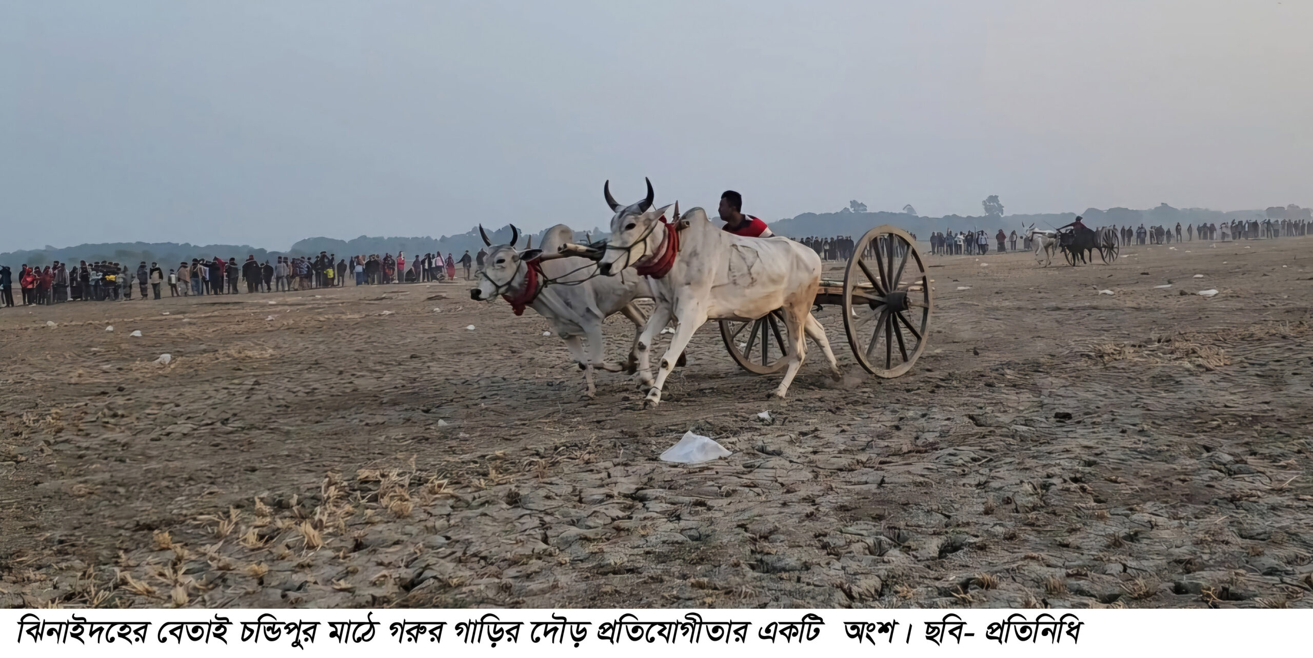 ঝিনাইদহে গরুর গাড়ির দৌড় প্রতিযোগীতা মাঠে মানুষের ঢল