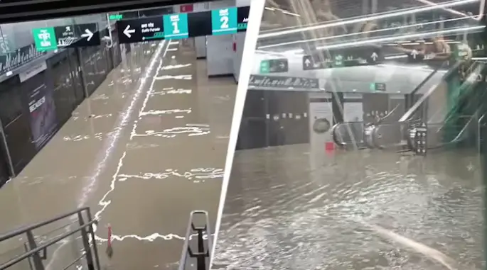 ভারতের মুম্বাইয়ে ভারী বৃষ্টিতে নতুন চালু হওয়া ওয়ারলি আন্ডারগ্রাউন্ড মেট্রো স্টেশন বৃষ্টির পানিতে ডুবে গেছে। নবনির্মিত এই স্টেশনটি মাত্র কিছুদিন আগেই চালু হয়েছিল। এছাড়া শহরে গতকাল রাত থেকে টানা ভারী বৃষ্টি হয়, যা সকাল পর্যন্ত চলে। ফলে একাধিক জায়গায় জলাবদ্ধতা সৃষ্টি হয় এবং তীব্র যানজট দেখা দেয়।