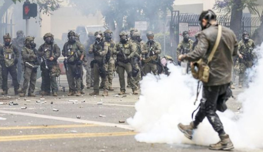 মার্কিন প্রতিরক্ষামন্ত্রী পিট হেগসেথ এক্স-এ দেওয়া বার্তায় জানিয়েছেন, বিক্ষোভ না থামলে আরও কঠোর ব্যবস্থা নেওয়া হবে। তিনি সতর্ক করে বলেন, প্রয়োজনে মেরিন সেনাও মোতায়েন করা হবে। বিক্ষোভকে 'জাতীয় নিরাপত্তা ঝুঁকি' হিসেবে উল্লেখ করে তিনি দাবি করেন, এর পেছনে বিদেশি সন্ত্রাসী সংগঠন বা অপরাধী চক্র জড়িত থাকতে পারে।