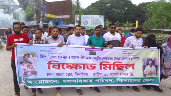 ঢাকায় নূর-রাশেদ এর উপর হামলার প্রতিবাদে ঝিনাইদহে বিক্ষোভ