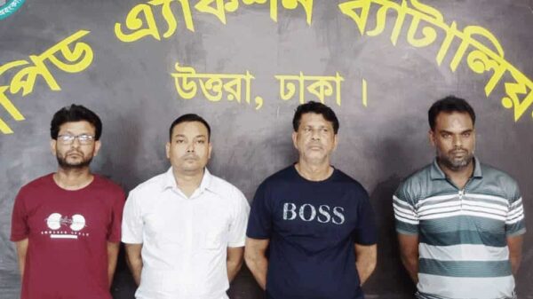 গ্রেফতারকৃতরা হলো— মুন্সীগঞ্জের মো. গোলাম মাওলা কায়েছ (৫৭) ও মো. পিয়ার হোসেন (৪২), ঝিনাইদহের মো. নাসিম রেজা (৩০) এবং পাবনার মো. আবুল কালাম আজাদ (৪০)। তল্লাশিতে তাদের কাছ থেকে একটি দেশীয় পিস্তল, একটি ম্যাগজিন, ১১ রাউন্ড গুলি, ২টি ওয়ান শুটারগান, ২টি কার্তুজ, মাইক্রোবাস, ৪টি মোবাইল ফোন, ৪টি সিমকার্ড ও নগদ ৪ হাজার ২০০ টাকা উদ্ধার করা হয়।গ্রেফতারকৃতদের বিরুদ্ধে খিলক্ষেত থানায় মামলা দায়েরের প্রক্রিয়া চলছে বলেও জানিয়েছে র‌্যাব।