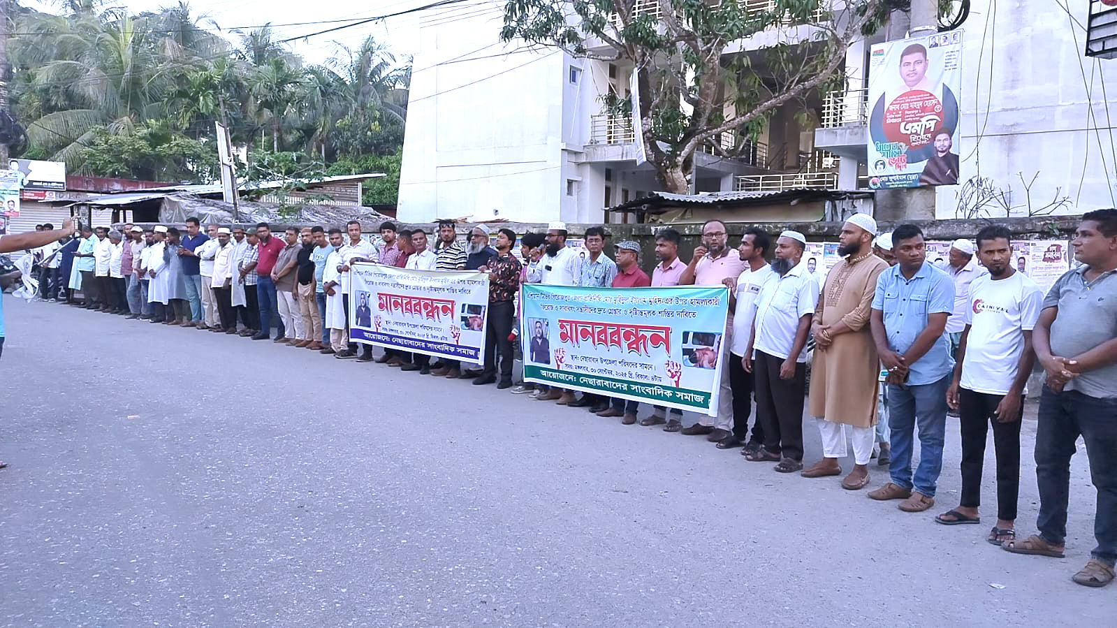 এশিয়ান টিভির পিরোজপুর জেলা প্রতিনিধি মোঃ মুহিদুল ইসলাম মুহিদ-এর উপর হামলাকারী ফিরোজ ও সাবাবগংদের দ্রুত গ্রেপ্তার ও দৃষ্টান্তমূলক শাস্তির দাবিতে নেছারাবাদে মানববন্ধন অনুষ্ঠিত হয়েছে।