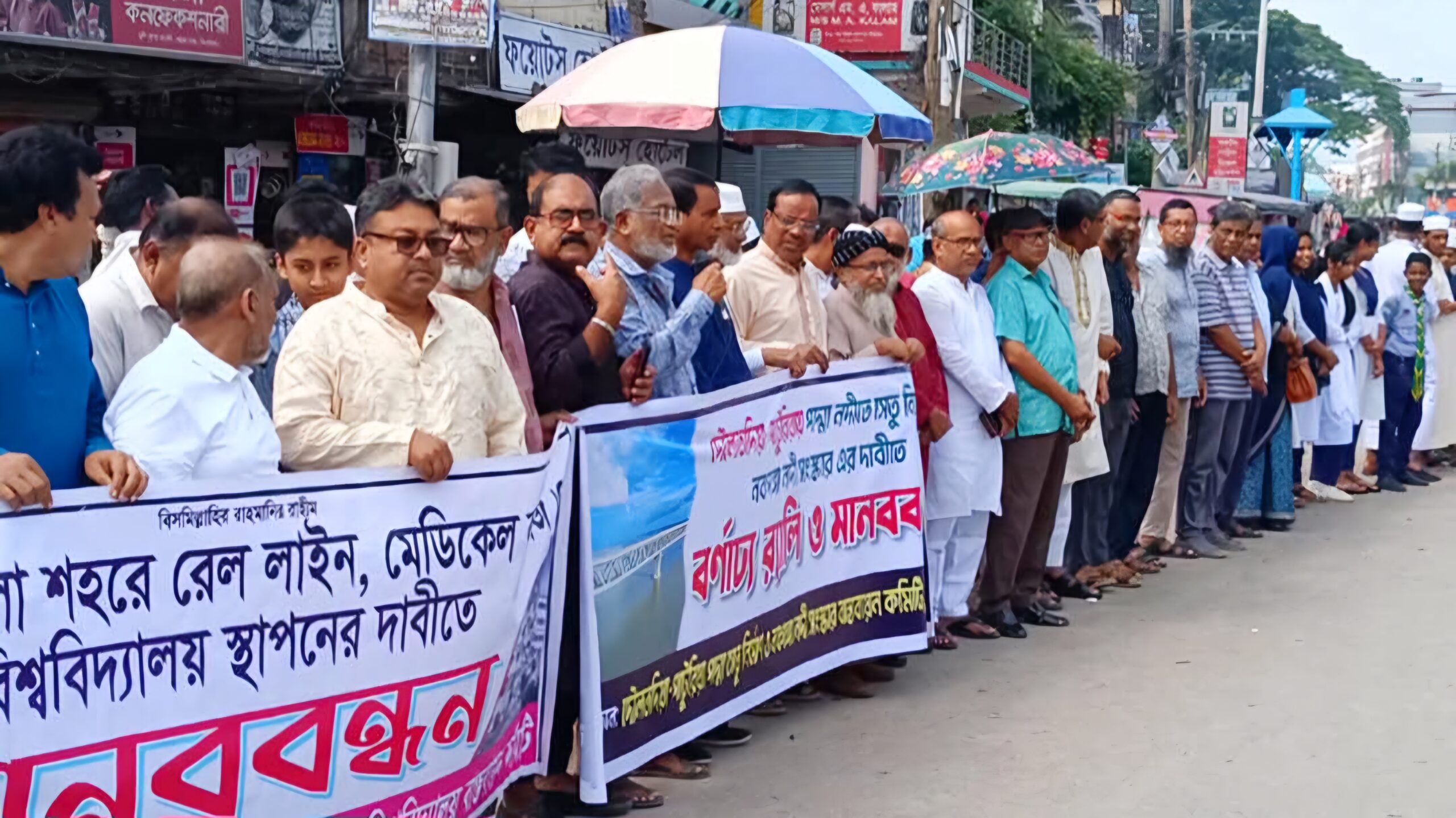 ঝিনাইদহে রেললাইন, মেডিকেল কলেজ ও নদী সংস্কারের দাবীতে মানববন্ধন