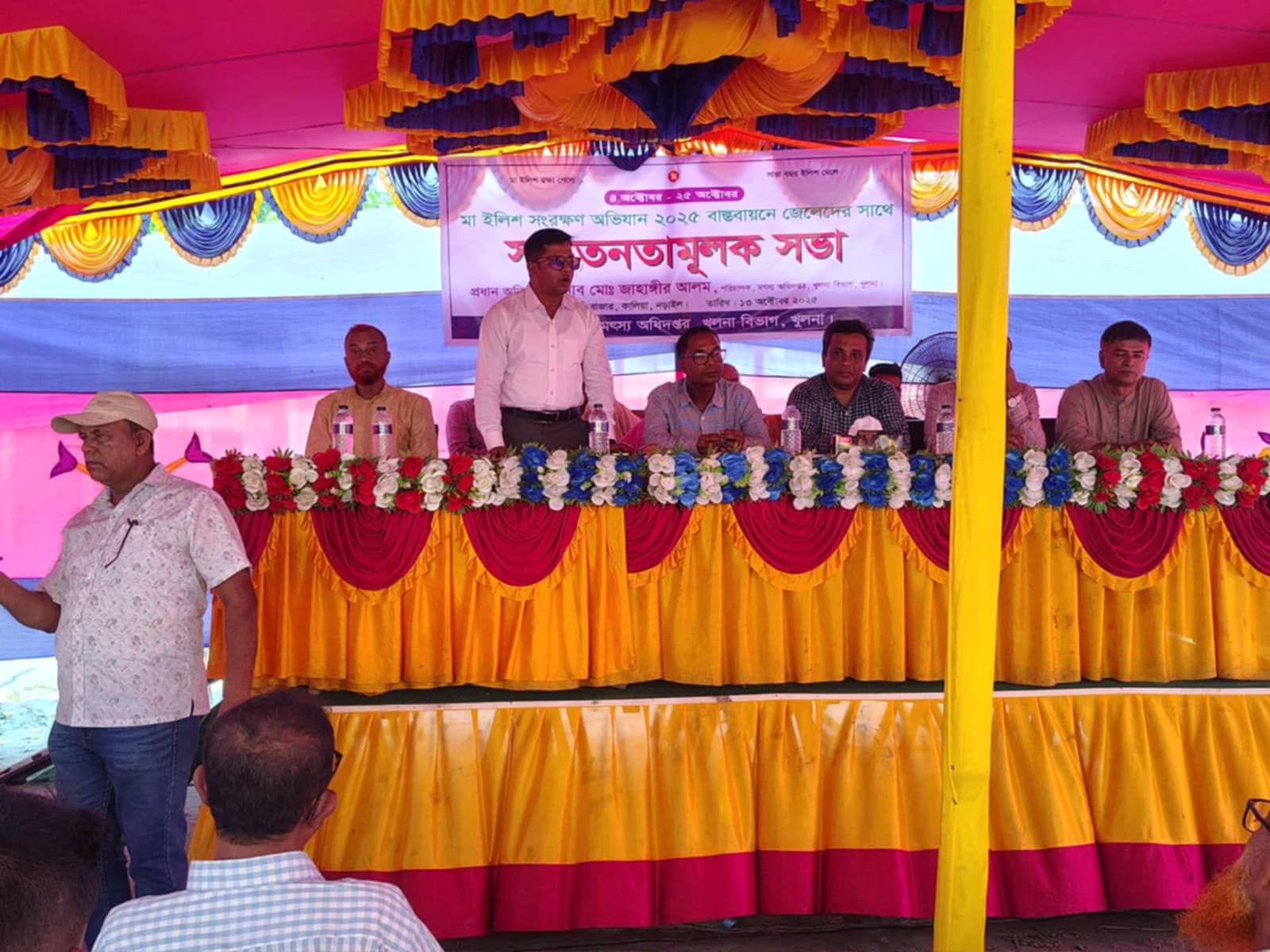 এছাড়াও উপস্থিত ছিলেন পাচগ্রাম ইউনিয়নের চেয়ারম্যান মো: সাইফুজ্জামান, কালিয়া প্রেস ক্লাবের সভাপতি সাংবাদিক গোলাম মোর্শেদ শেখ, শিক্ষা অনুরাগী ও সমাজ সেবক আশরাফ উদ্দিন আনসারীসহ প্রান্তিক জেলেরা। সচেতনতামূলক সভায় বক্তারা বলেন, চলতি মাসের ৪ তারিখ থেকে ২৫ তারিখ পর্যন্ত ইলিশের প্রজনন মৌসুম। তাই ইলিশের প্রজনন নির্বিঘ্ন করতে এই ২২ দিন ইলিশ মাছ শিকার সরকারি ভাবে নিষিদ্ধ করা হয়েছে।