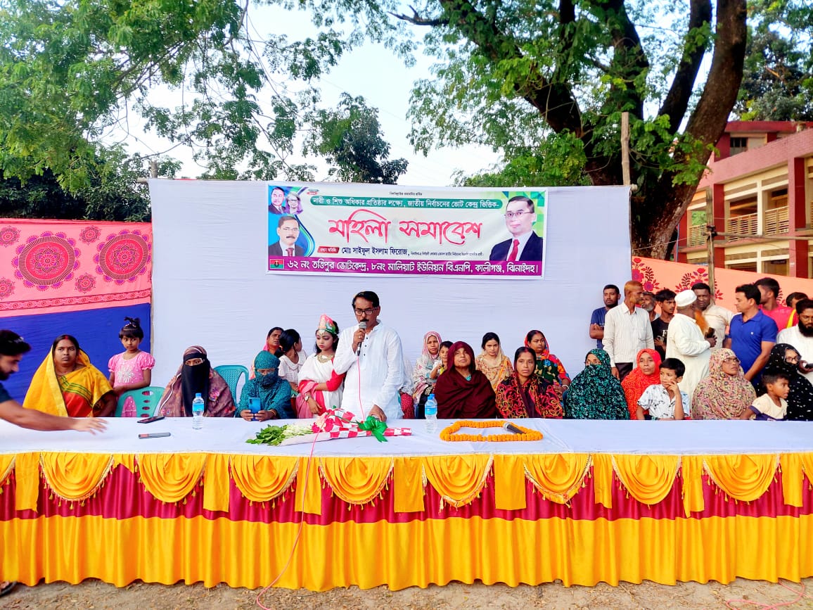 বাংলাদেশ জাতীয়তাবাদী দল বিএনপি, দেশনেত্রী বেগম খালেদা জিয়া ও বিএনপির ভারপ্রাপ্ত চেয়ারম্যান তারেক রহমানের উপর আস্থা রাখুন। আগামী ফেব্রুয়ারি মাসের নির্বাচনে ধানের শীষ প্রতিক জয়লাভ করলে এই বাংলাদেশে নতুন করে গণতন্ত্র ফিরে আসবে বলে মন্তব্য করেছেন কেন্দ্রীয় স্বেচ্ছাসেবক দলের সিনিয়র যুগ্ম সম্পাদক ও ঝিনাইদহ-৪ আসনের মনোনয়ন প্রত্যাশী সাইফুল ইসলাম ফিরোজ।শুক্রবার বিকেলে কালীগঞ্জ উপজেলার মালিয়াট ইউনিয়নের তত্ত্বিপুর-মাগুরা সরকারি প্রাথমিক বিদ্যালয় মাঠে আয়োজিত মহিলা সমাবেশে প্রধান অতিথির বক্তব্যে এ কথা বলেন তিনি।