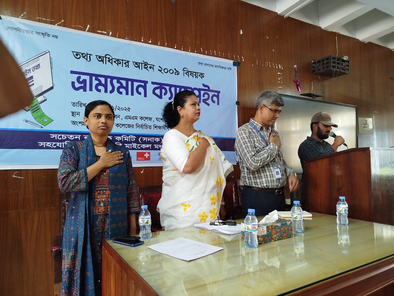 যশোর প্রতিনিধি : “গোপনীয়তার সংস্কৃতি নয়, তথ্য প্রদানের মানসিকতা চাই”—এই প্রতিপাদ্যকে সামনে রেখে মঙ্গলবার সকালে যশোর সরকারি এমএম কলেজে বিএনসিসি সদস্যদের অংশগ্রহণে তথ্য অধিকার আইন ২০০৯–বিষয়ক একটি ভ্রাম্যমাণ ক্যাম্পেইন আয়োজন করে সচেতন নাগরিক কমিটি (সনাক) ও ট্রান্সপারেন্সি ইন্টারন্যাশনাল বাংলাদেশ (টিআইবি)।
