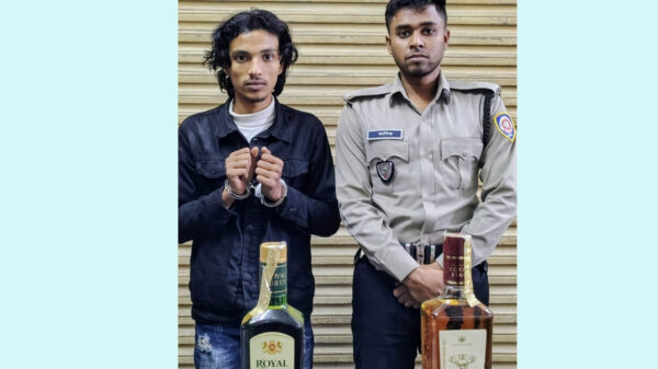 যশোর অফিস : মাদকদ্রব্য নিয়ন্ত্রণ অধিদপ্তর, যশোরের অভিযানে মনোহরপুর গ্রাম থেকে ৫০ পিস ইয়াবা ও দুই বোতল বিদেশী মদসহ এক যুবককে গ্রেফতার করা হয়েছে। রোববার সন্ধ্যা সাড়ে ৬টার দিকে আসামিদের নিজ বাড়িতে অভিযান চালিয়ে ইউসুফ গাজী (১৯)কে আটক করা হয়। এ সময় তার পিতা বিল্লাল গাজী (৪১) পালিয়ে যান।