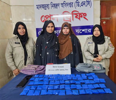 যশোর প্রতিনিধি : যশোরের মাদকদ্রব্য নিয়ন্ত্রণ অধিদফতরের (ডিএনসি) সদস্যরা ১৪ হাজার পিস ইয়াবাসহ দুই রোহিঙ্গা নারীকে আটক করেছে বুধবার যশোর সদর উপজেলার রাজারহাট এলাকার ‘বি কে সিটি হোটেল অ্যান্ড রিসোর্ট’ সংলগ্ন এলাকায় অভিযান চালিয়ে তাদের আটক করা হয়। অভিযানকালে তাদের কাছ থেকে মোট ১৪ হাজার পিস ইয়াবা ট্যাবলেট উদ্ধার করা হয়। এর মধ্যে একজনের কাছ থেকে ৬ হাজার এবং অপরজনের কাছ থেকে ৮ হাজার পিস ইয়াবা উদ্ধার করা হয়েছে।