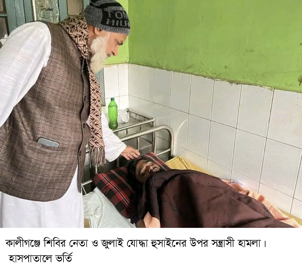 কালীগঞ্জে শিবির নেতা ও জুলাই যোদ্ধার উপর সন্ত্রাসী হামলা, হাসপাতালে ভর্তি