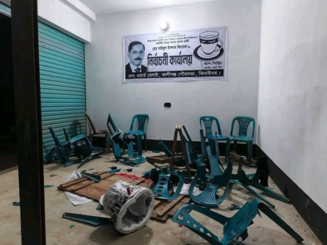 কালীগঞ্জে স্বতন্ত্র প্রার্থীর দু’টি অফিস ভাংচুর ককটেল নিক্ষেপ