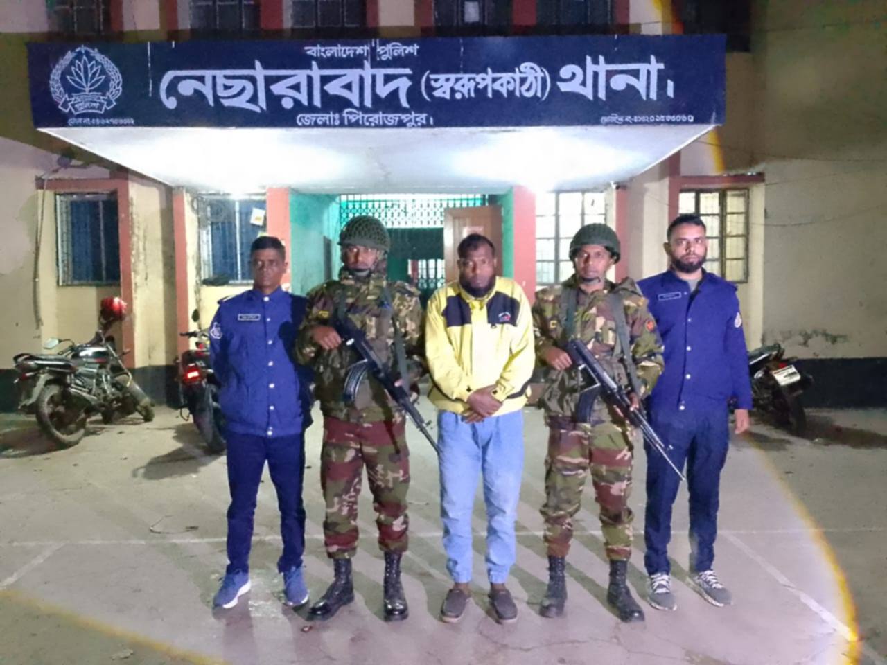নেছারাবাদ উপজেলা ছাত্রদলের সাবেক যুগ্ম আহ্বায়ক ও যুবদলের নেতা এইচ এম শাকিল হোসেন (৪৩) কে গ্রেফতার করেছে যৌথ বাহিনী। শনিবার (৭ ফেব্রুয়ারি) গভীর রাতে পুলিশ ও সেনাবাহিনীর যৌথ অভিযানে নেছারাবাদ উপজেলার সেহাংগল গ্রামে নিজ বাড়ি থেকে তাকে গ্রেফতার করা হয়। শনিবার (৭ ফেব্রুয়ারি) দুপুরে তার বিরুদ্ধে মামলা দায়ের করে বিজ্ঞ আদালতে প্রেরণ করা হয়েছে।