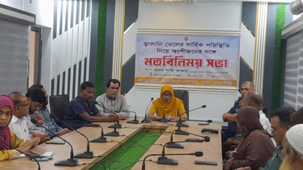 মাহাবুর রহমান বাঘা (রাজশাহী) প্রতিনিধিঃ রাজশাহীর বাঘা উপজেলায় জ্বালানি তেলের সার্বিক পরিস্থিতি মোকাবিলায় অংশীজনদের সঙ্গে এক গুরুত্বপূর্ণ মতবিনিময় সভা অনুষ্ঠিত হয়েছে। বৃহস্পতিবার (৯ এপ্রিল) বিকেল ৪টায় উপজেলা প্রশাসনের উদ্যোগে উপজেলা বিস্তারিত...