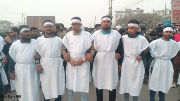 সোহেলরানা ঝিনাইদহ: ঝিনাইদহের কালীগঞ্জ উপজেলায় বিএনপি ও যুবদলের আহ্বানে কাফন পরে এক ব্যতিক্রমধর্মী বিক্ষোভ মিছিল ও প্রতিবাদ সভা অনুষ্ঠিত হয়েছে। ঝিনাইদহ-৪ আসনে ধানের শীষ প্রতীকে বিএনপিকে মনোনয়ন না দিয়ে জোটের