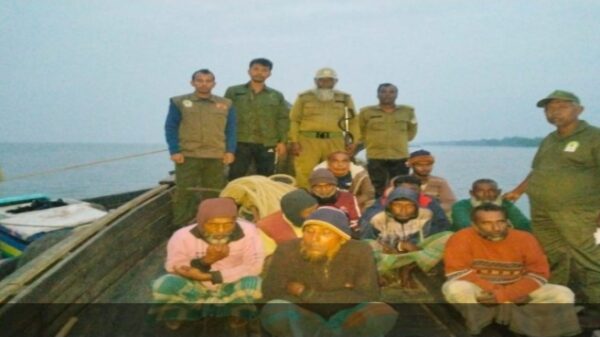 শরণখোলা (বাগেরহাট) প্রতিনিধি : পূর্ব সুন্দরবনের শরণখোলা রেঞ্জের সেলার চরের চান মিয়ার খাল ও কালামিয়ার খাল এলাকার নিষিদ্ধ খালে মাছ ধরার সময় অভিযান চালিয়ে পাঁচটি নৌকা সহ ১০ জেলেকে লেগে